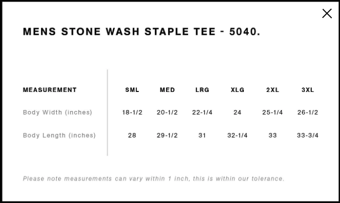 See sizing chart in the product images. If the size of shirt you want is not available, email shop@manandwitch.com.